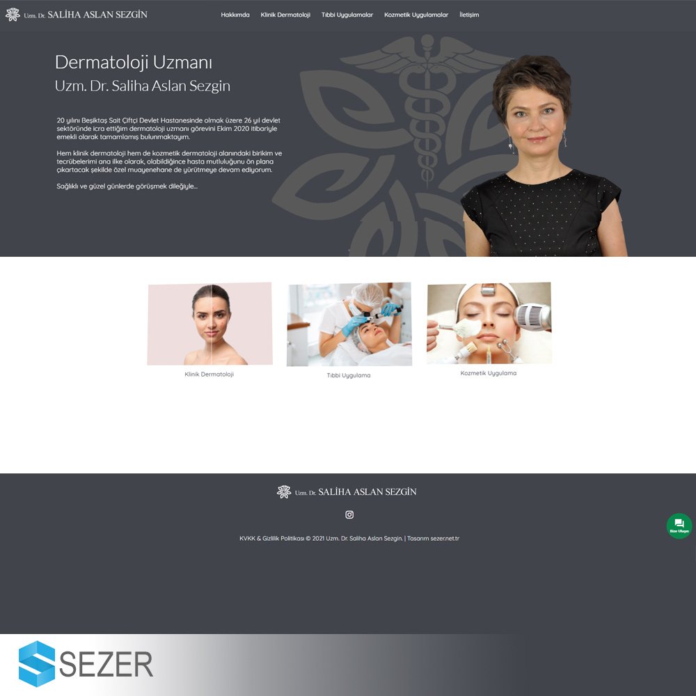 Uzm Dr Saliha Aslan SezginDermatoloji uzmanı Uzm Dr Saliha Aslan Sezgin kişisel web sayfası tasarımı. dr e ticaret eticaret muratsezer saliha aslan sezgin sezer sezersosyal uzm web tasarım webtasarim
