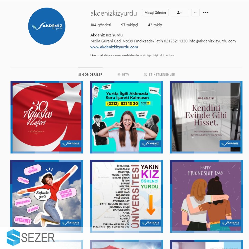 Akdeniz Kız YurduAkdenzi Kız Öğrenci Yurdu sosyal medya içerik üretme, yayınlama ve takibi bizim tarafımızdan yapılmaktadır. akdenizkizyurdu e ticaret muratsezer sezer sezersosyal web tasarım webtasarim